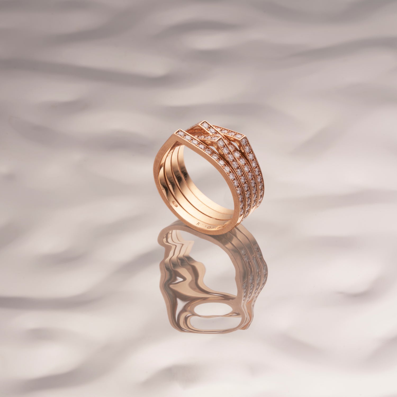 Antifer 4 rows ring in pink gold 18-carats paved with diamonds-carats Antifer 4 rows ring in pink gold 18-carats paved with diamonds-carats