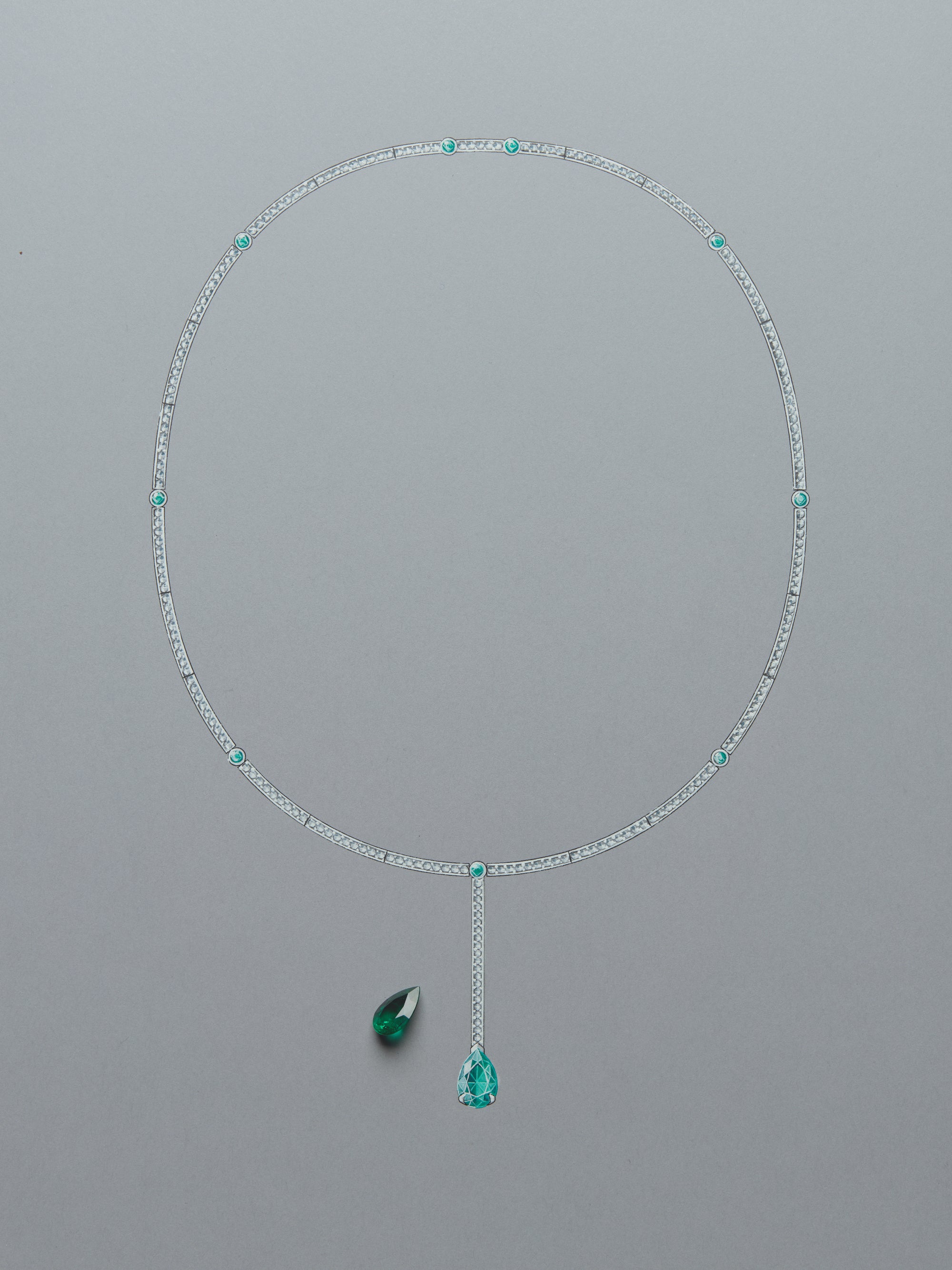 The pieces predominantly showcase diamonds and emeralds, two of the Maison's most cherished gemstones, selected for their quality, shape, and color.