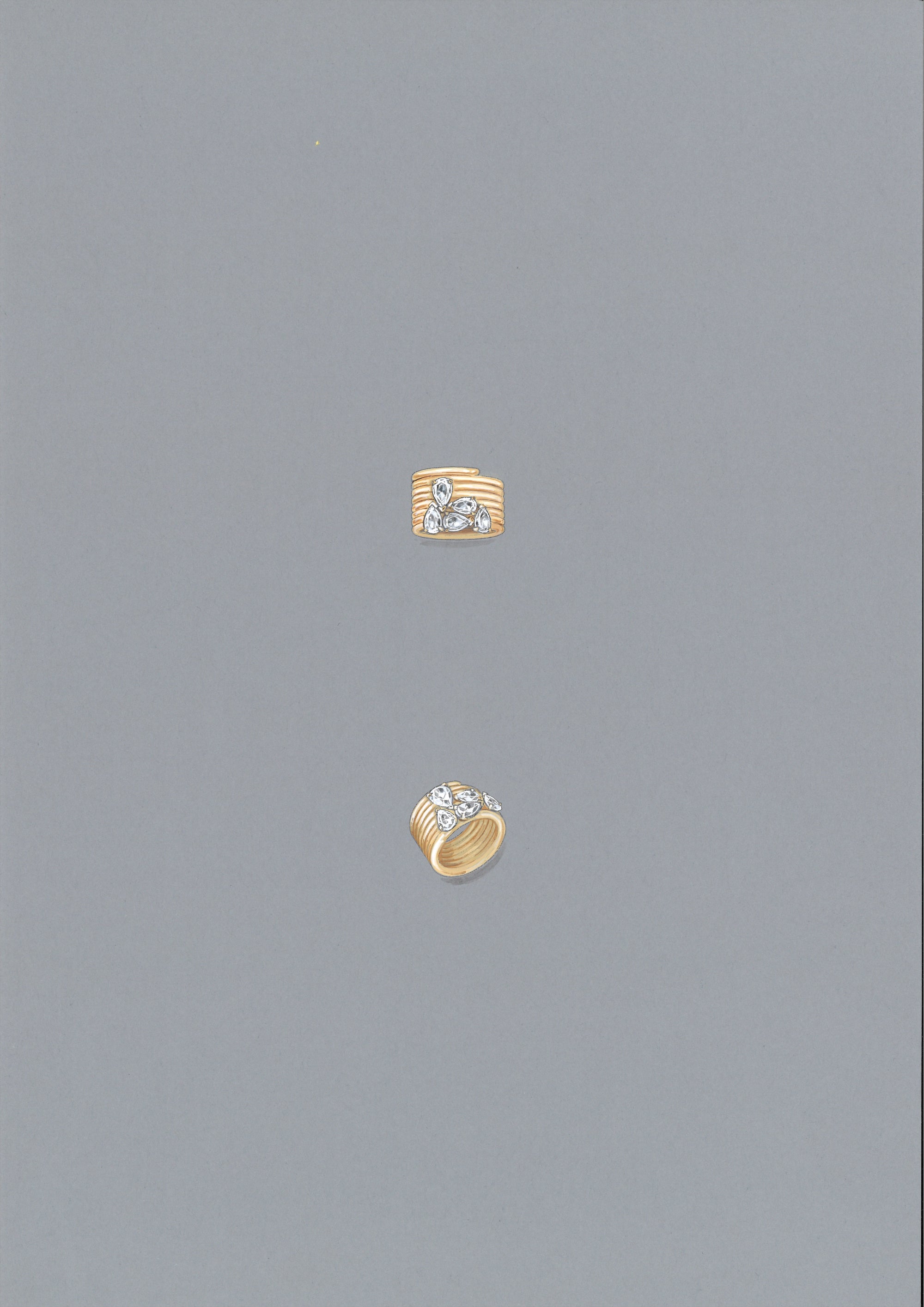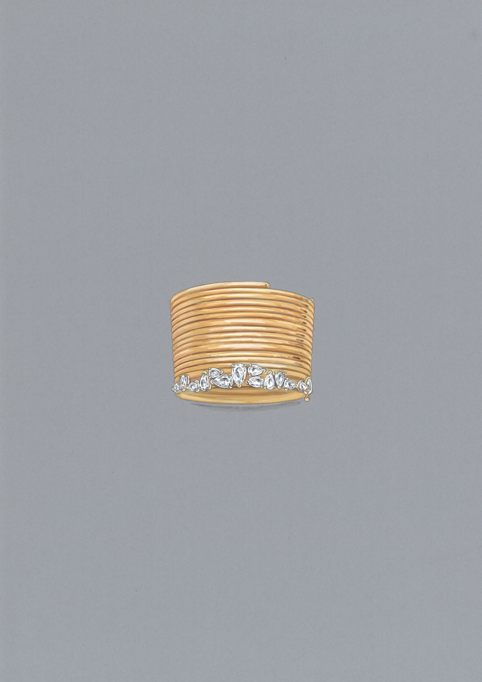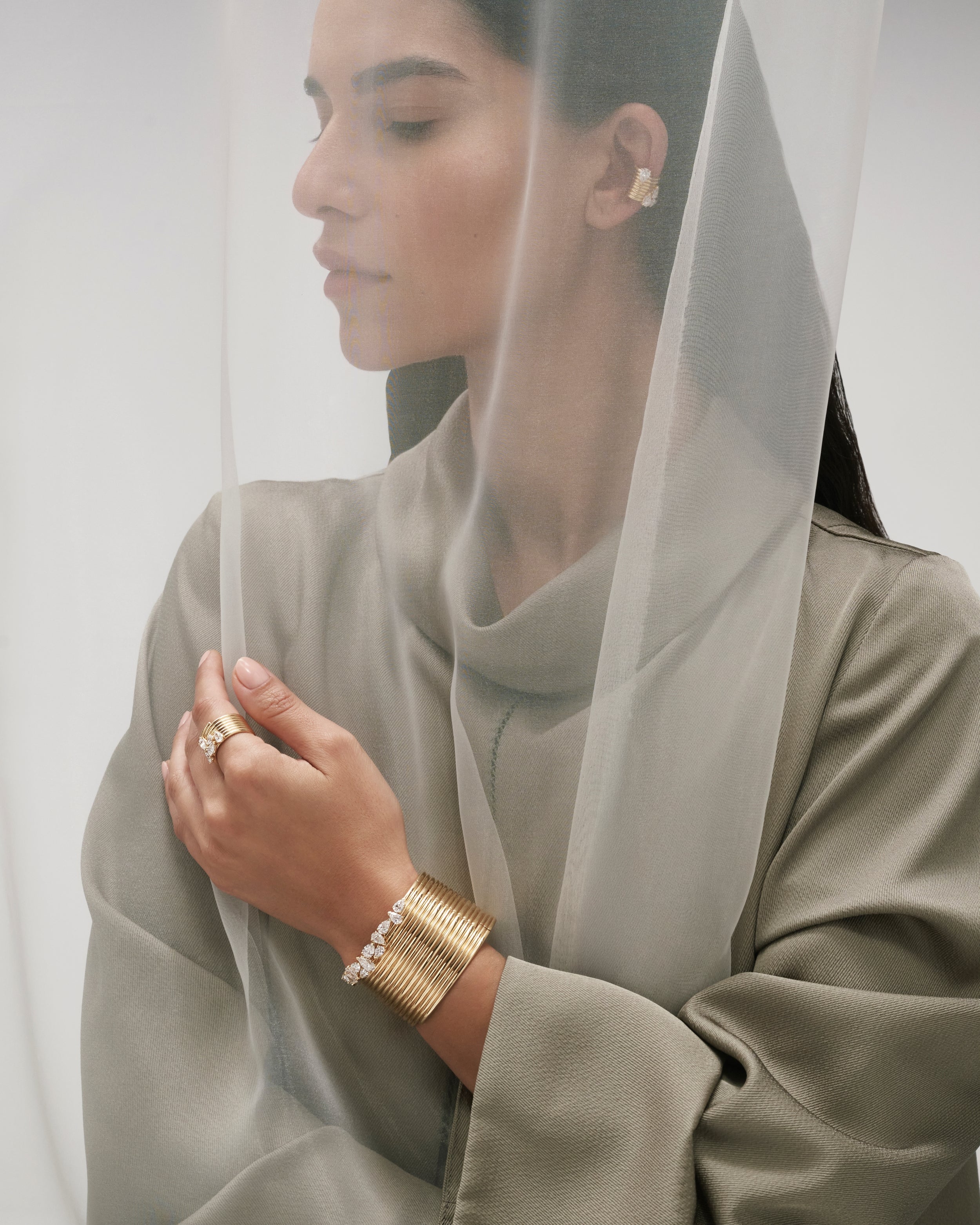 La bague Spirale est l'exemple parfait de l'approche sculpturale de la collection, composée de fils d'or avec un mouvement spécifique suivant le corps de bague jusqu'à la spirale pour un équilibre parfait du design.