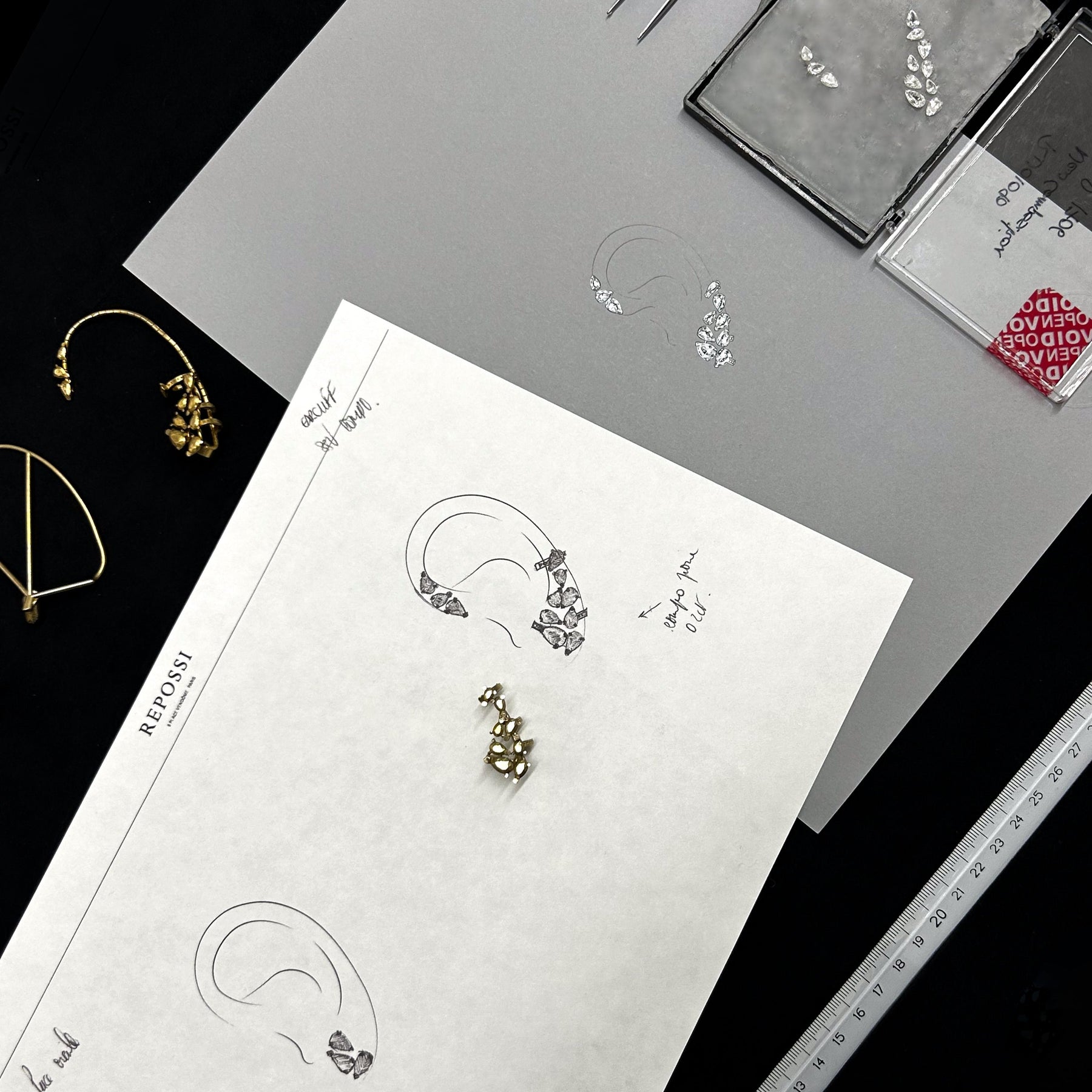 La Maison Repossi travaille depuis 1957 avec les mêmes ateliers historiques en Italie qui mettent tout leur savoir-faire au service du Design. La technicité de la mise en lumière des créations de la Maison relève d’une maitrise particulière du jeu d’accumulation et de composition. L’intégralité des pièces sont réalisées à la main sans processus d’usinage.