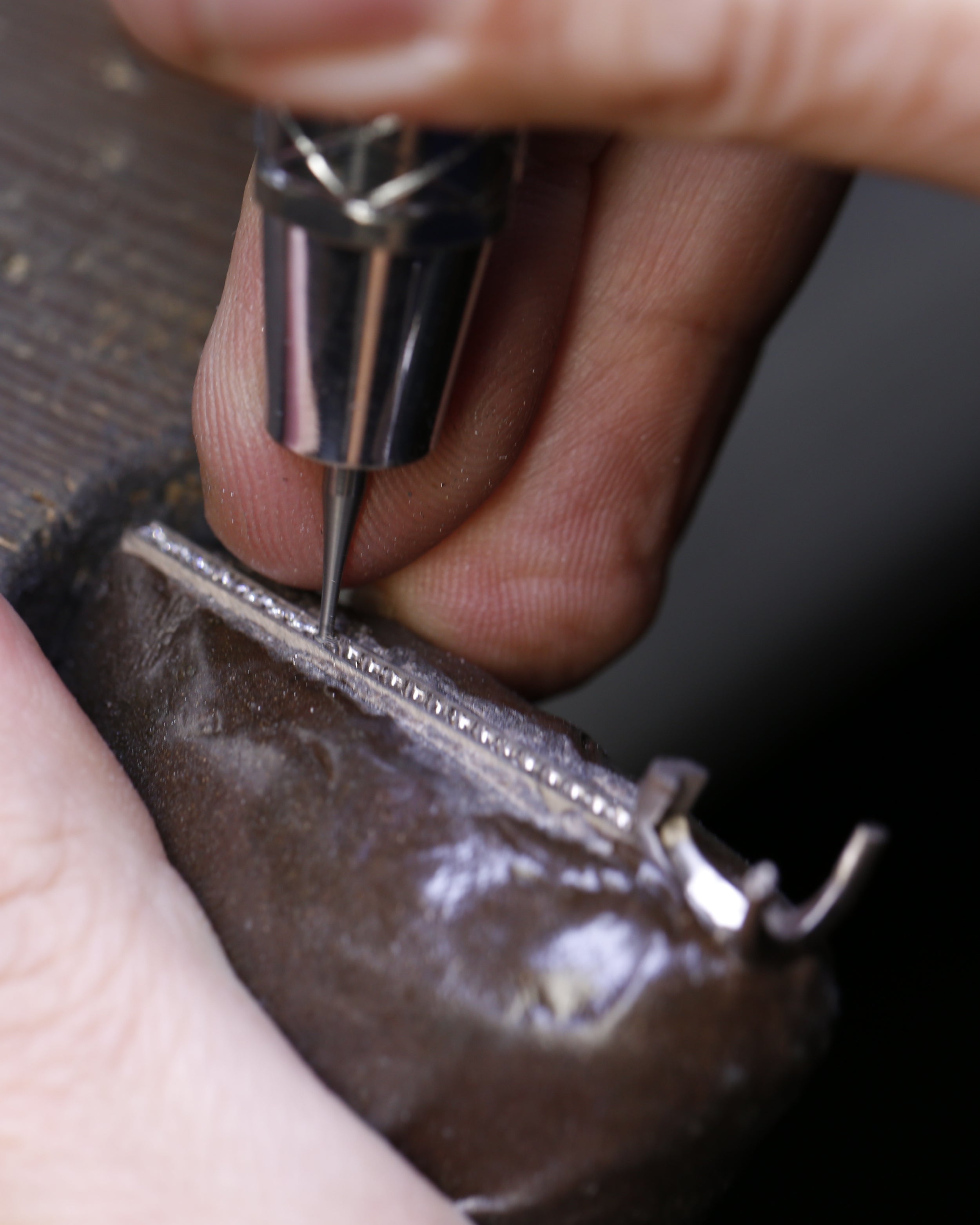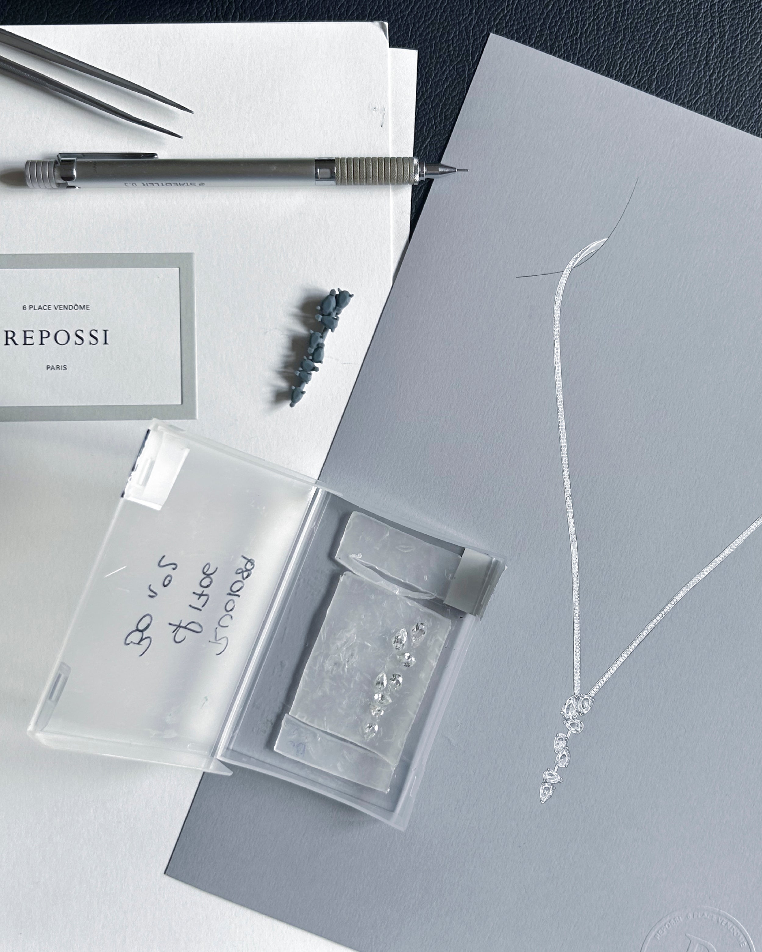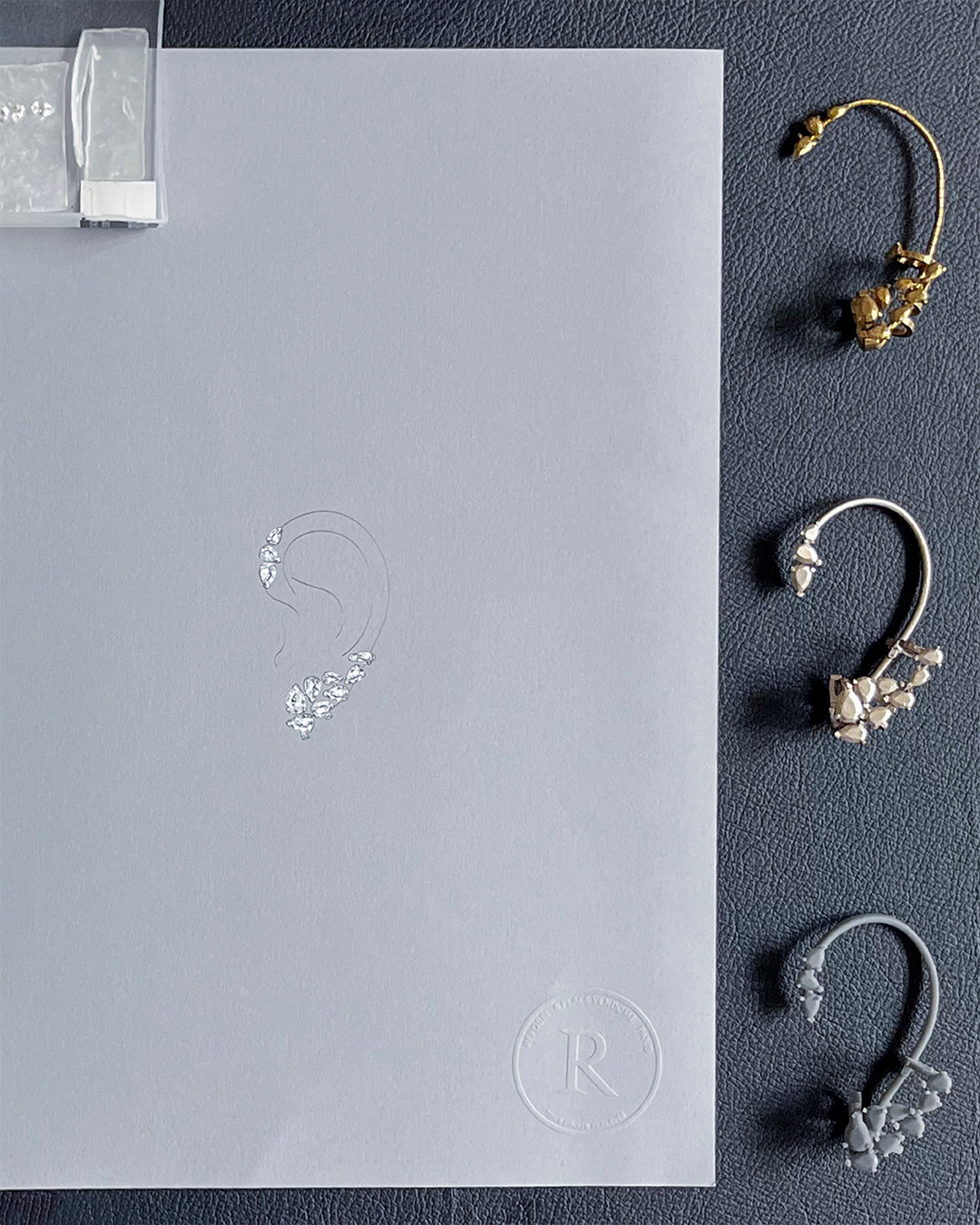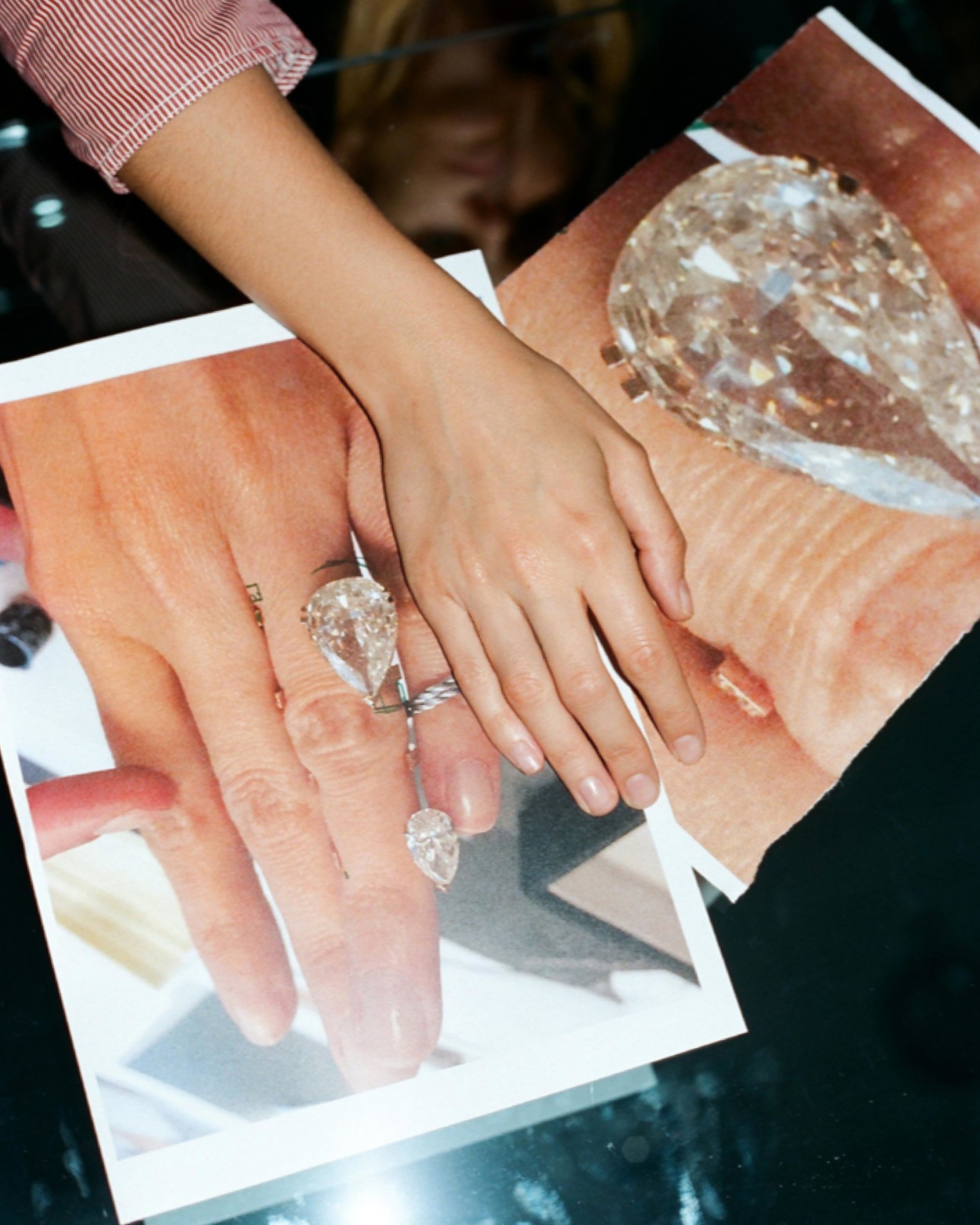 Le concept créatif s'inspire du geste éphémère traditionnel des joailliers qui placent des pierres sur leurs mains pour les évaluer.
