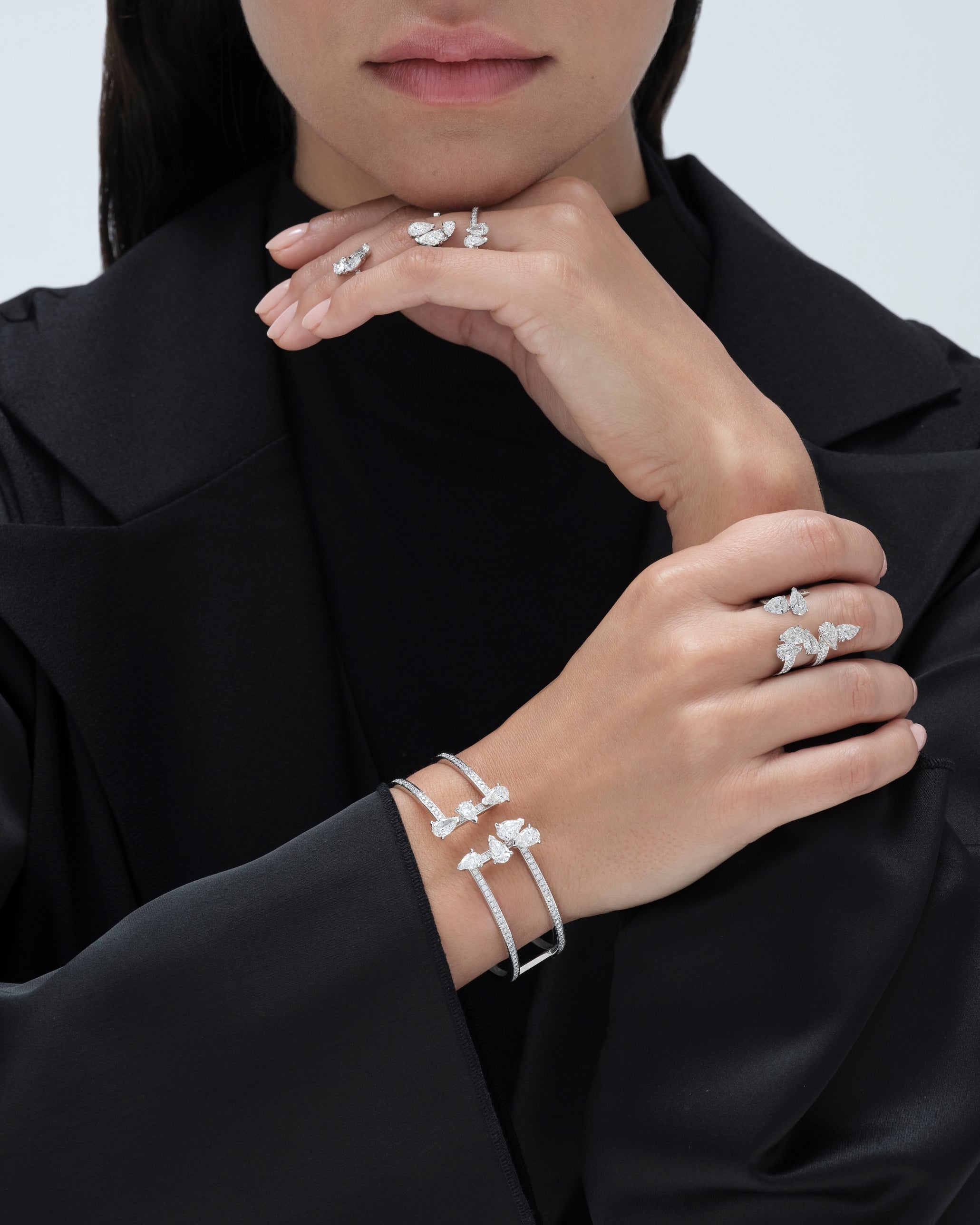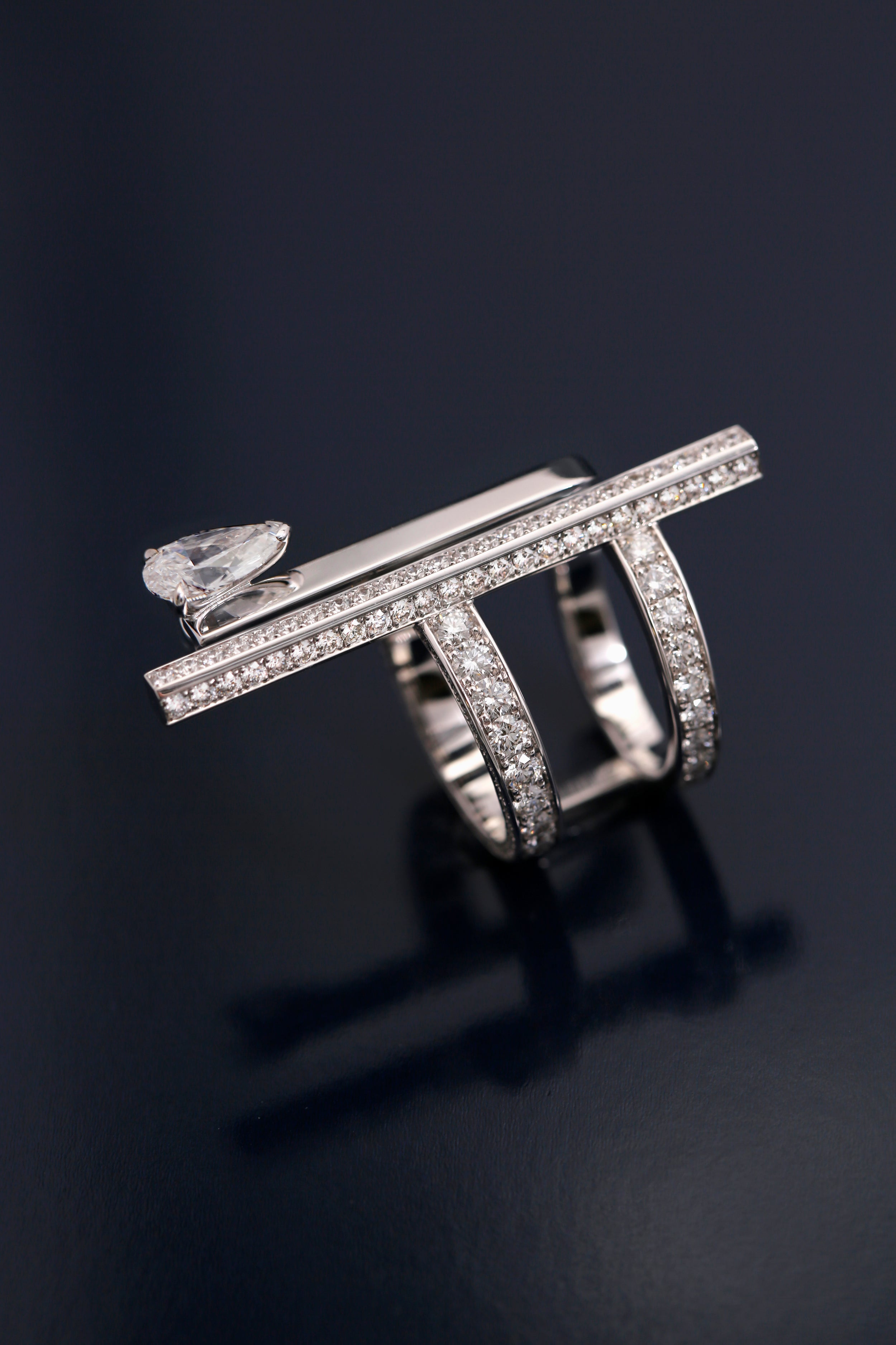 Cette collection réinvente les bijoux classiques, comme la bague solitaire, en suspendant le diamant « dans le vide ». La pureté de ces créations réside dans la structure cachée qui s’efface pour ne laisser apparaître que le diamant qui flotte.